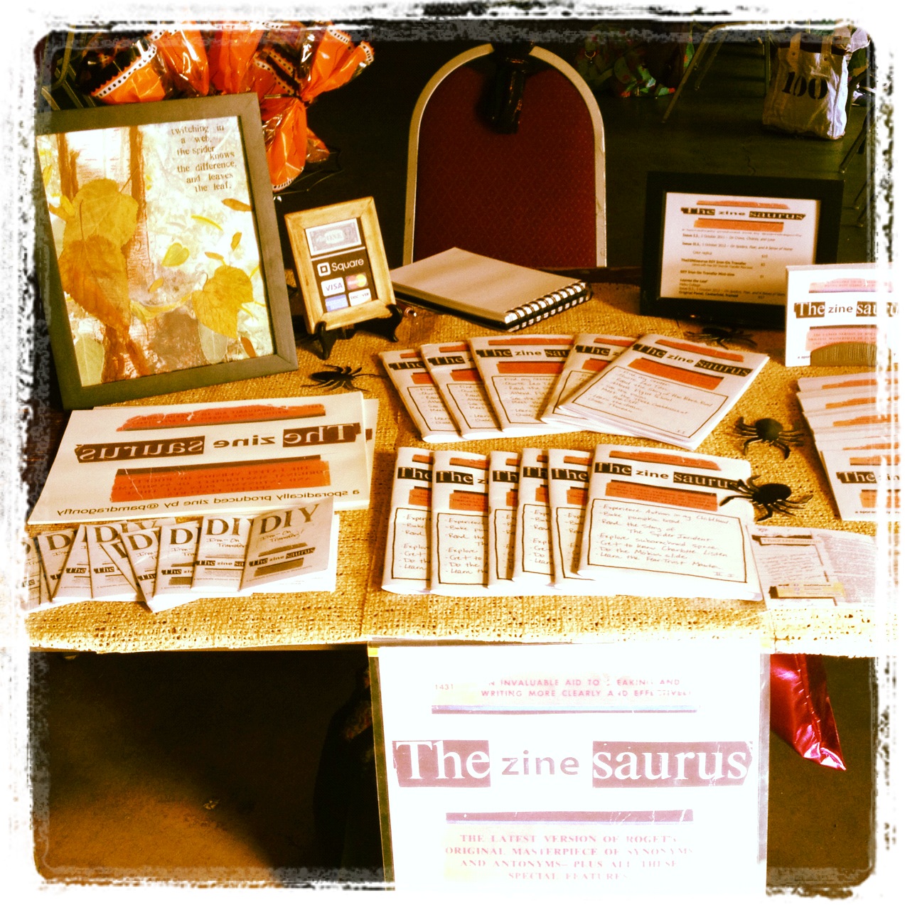 an overview of my table at the 2012 ABQ Zine Fest, Albuquerque, NM, Saturday, October 6