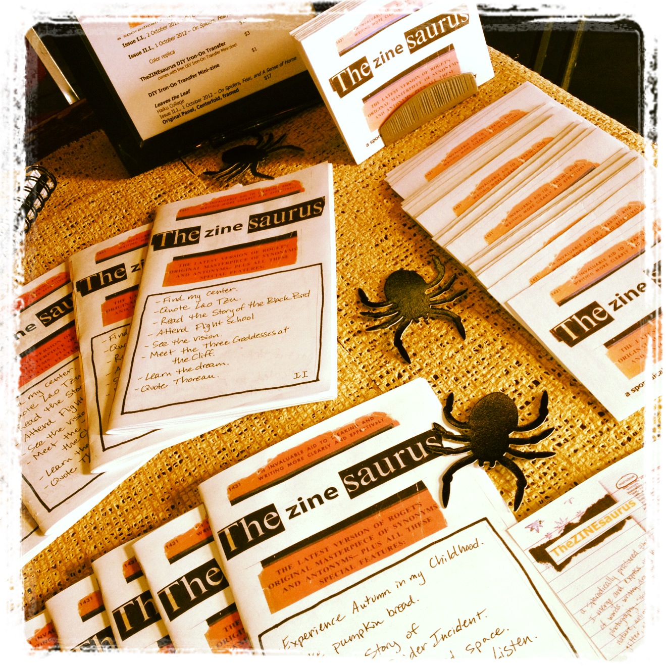 artsy close up of the table at the 2012 ABQ Zine Fest, Albuquerque, NM, Saturday, October 6